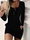 Kadın Uzun Kollu Yakası Açık Düğme Ve Cep Detaylı Kısa şardonlu Kaşkorse Elbise