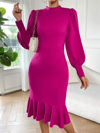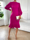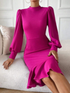 Kadın Uzun Kollu Yarı Balıkçı Yaka Etek Ucu Fırfır Detaylı Midi Ithal Krep Elbise