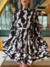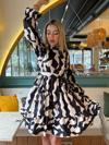 Kadın Uzun Kollu Yarı Balıkçı Yaka Geometrik Desen Kısa şardonlu Dalgıç Elbise