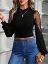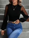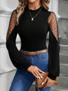 Kadın Uzun Kollu Yarı Balıkçı Yaka Kolları Tül Detaylı Ithal Krep Bluz