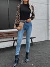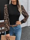 Kadın Uzun Kollu Yarı Balıkçı Yaka Leopar Detaylı Kaşkorse Bluz