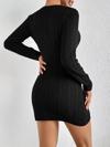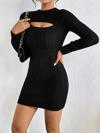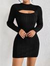 Kadın Uzun Kollu Yarı Balıkçı Yaka Pencere Göğüs Detay Mini Triko Elbise