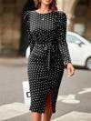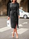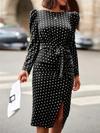Kadın Uzun Kollu Yuvarlak Yaka Belden Kuşaklı önden Yırtmaçlı örme Krep Elbise