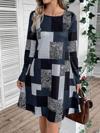 Kadın Uzun Kollu Yuvarlak Yaka Geometrik Süprem Elbise