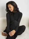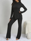 Martcini Kadın Uzun Kollu Yuvarlak Yaka Yandan Yırtmaç Detaylı şardonlu Kaşkorse Bluz Ve Pantolon Ikili Takım