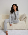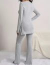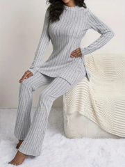 Martcini Kadın Uzun Kollu Yuvarlak Yaka Yandan Yırtmaç Detaylı şardonlu Kaşkorse Bluz Ve Pantolon Ikili Takım
