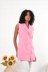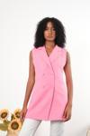 Kadın Kumaş Düğmeli Uzun Dokuma Yelek