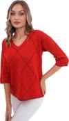 -Kadın V Yaka Baklava Desen Turuva Kol Simli Kazak 12765. -Model:BGL-ST04099. -Ürün Boyu: 63 Cm. -Ürün Standar Beden Olup M-L Beden Ölçülerindedir. -Kumaş Karışım:% 100 Viscon.