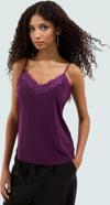 Zarif ve şık görünümün sırrı, dantelli detayıyla göz alıcı mürdüm renkli bluz'umuzda saklı! Yaz aylarının vazgeçilmez parçası olacak bu ince askılı bluz, iş hayatınızda ve özel günlerinizde rahatlıkla kullanabileceğiniz bir seçenek. Kalın Sandy dokusuyla şeklini korurken, %96 Polyester ve %4 Elastan karışımıyla gün boyu konfor sunuyor. V yaka tasarımı ve regular boyu ile her vücut tipine uyum sağlayan bluz, hem modern hem de feminen bir tarz yaratmanıza yardımcı olur. Nefes alan kumaşı ile yaz sıcağında bile serin ve rahat hissetmenizi sağlar. Dantel detaylı tasarımı ile şıklığınıza şıklık katarken, cepsiz yapısıyla minimal bir görünüm sunar. Makinede yıkama özelliği sayesinde bakımı kolaydır. İş görüşmelerinden akşam yemeklerine kadar, her türlü ortam için idealdir.
