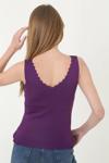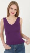 Kadın V Yaka Fırfır Detay Crop - Mor
