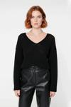 Ürün Özellikleri: Geniş kalıp, yünlü materyal, düz desen, V yaka, standart kol, triko kumaş, gri renk, baskısız tasarım.