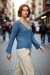 Uzun standart kol yapısı, günlük hareketlerinizde tam özgürlük sağlarken, fitilli dokuma tipi kazağa modern ve dinamik bir hava katar. Orta kalınlıktaki triko kumaşı, hem iç mekanlarda tek başına hem de dış mekanlarda bir palto veya mont altında rahatlıkla kullanılabilir. Cepsiz tasarımı temiz ve akıcı bir görünüm sunarken, ürünün materyal bileşimi (polyester, yün, akrilik vb.) dayanıklılığını artırarak uzun ömürlü kullanım garantisi verir. Bakımı oldukça pratik olup, makinede yıkama talimatlarına uygundur.