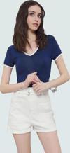 PayBuy Kadın V Yaka Kısa Kollu Fitted Viskon Ribana Bluz Günlük Kullanım Konforlu Kesim Rahat Ve Şık