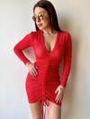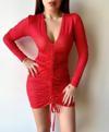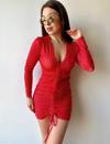 Kadın V Yaka önü Asansör Büzgü Detay Fırsat ürün Puantiyeli Mini Elbise