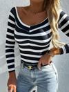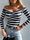 Kadın V Yaka Süprem Kumaş Çizgi Desenli Bluz