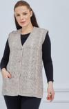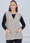 Kadın V Yaka Zincir Örgü Cepli Yün Anne Triko Yelek