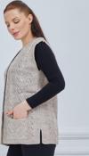 fresh&moda Kadın V Yaka Zincir Örgü Cepli Yün Anne Triko Yelek