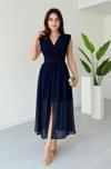 Kadın Vatkalı Şifon Kolsuz Kruvaze Yaka Yırtmaç Detaylı Şık Midi Elbise