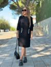 Kadın Viskon Pamuklu Kumaş Kol File , şerit Ve Cep Detaylı Elbise