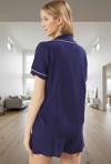 Takım, 2 parçadan oluşmaktadır: kısa kollu gömlek ve şort. 36-44 beden aralığında mevcuttur. Makinede 30 derecede yıkamanız önerilir. Bu takım ile evinizde rahat ve şık hissedeceksiniz. Loungewear ve homewear olarak mükemmel bir seçim.