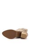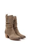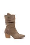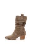 * Gön Suni Deri Sivri Burun Topuklu Körüklü Western Kovboy Kadın Günlük Kısa Çizme
