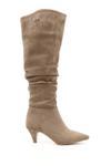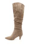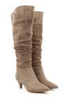 * Gön Suni Deri Sivri Burun Körüklü İnce Topuklu Kadın Çizme