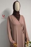Hem şıklığı hem konforu bir araya getiren Kadın Yandan Bağlamalı Penye Namaz Elbisesi, ibadetlerinizi huzur içinde yerine getirmeniz için özenle tasarlandı.