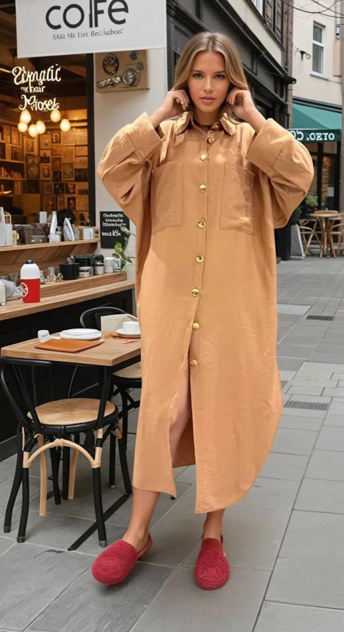 Kadın Keten Yarasa Kol Salaş Cepli Tunik Gömlek Elbise Resimdeki mankenin boyu 1,68 cm, 52' kg. dır.Mankende 36 beden kullanılmıştır. ; Modelin ölçüleri Boy:1,68 Göğüs 86 Bel:64 Kalça 90 cm.dir.; Elbisenin boyu 36 beden için 115 cm, Eni 75 cm.dir. ; Her bedende birer cm. artar. ; ; Siyah, Kiremit ve hardal renk seçenekleri mevcuttur. ; ; Yumuşak dokulu yazlık ve baharlık mevsimlik elbise. ; ; Ekstra rahat kalıptır, daha dar olmasını tercih ederseniz bir beden küçük sipariş verebilirsiniz. ; Tesettür giyime de uygundur.; ; Özel günlerde, doğum günü, yıldönümü, sevgililer günü hediyesi olarak tercih edilebilir. ; ; Stüdyo ortamında yapay ışık kullanılarak çekim yapıldığından ton farklılıkları olabilir. ; ; Düşük ısılarda çamaşır makinesinde yıkanabilir. ; ; Yıkama talimatına uygun olarak kullanıldığında uzun yıllar formu bozulmadan kullanabilirsiniz. ; ;