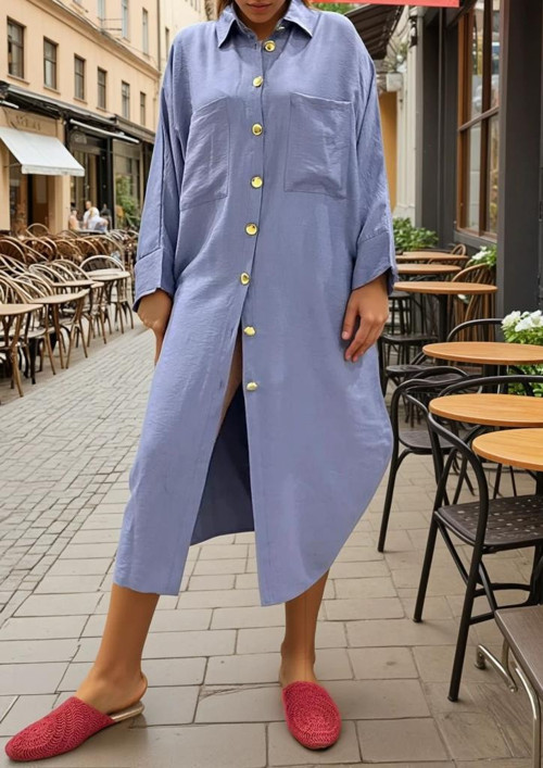 Kadın Yarasa Kol Tesettüre Uygun Gömlek Elbise Keten Karışımlı Tunik 3282420