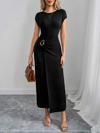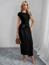Kadın Yarım Ay Kollu Yuvarlak Yaka önünde Toka Detaylı Modal Maxi Elbise
