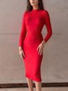 Kadın Yarım Balıkçı Yaka Süet Kumaş Fırsat ürün Midi Boy Elbise