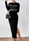 Kadın Yarım Balıkçı Yaka Taş Işemeli Bacak Dekolteli Maxi Boy Elbise
