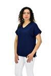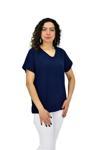 *Kadın Yarım Kol V Yaka Taşlı Likralı Tişöt* *BGL-ST04653* *Kumaş Karışım:% 100 Viskon* ( Beden Tablosundaki Ölçüleri. Beden__ M-L :Boy :65____Gögüs : 52 x 2 Beden__ XL-2XL :Boy :65____Gögüs : 54 x 2