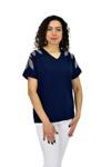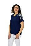 Dlavella Kadın Yarım Kol V Yaka Taşlı Likralı Tişöt BGL-ST04654