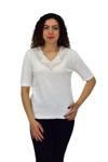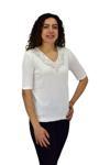 Kadın Yarım Kol V Yaka Yaka Sırt Detaylı Triko Tişöt 12837 BGL-ST04658