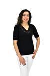 Dlavella Kadın Yarım Kol V Yaka Yaka Sırt Detaylı Triko Tişöt 12837 BGL-ST04658