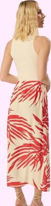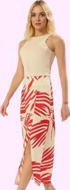 Yazın enerjisini ve rahatlığını yansıtan bu etkileyici midi etek, günlük yaşamınızda şıklığı ve konforu bir araya getiriyor. Canlı etnik desenleriyle dikkat çeken etek, A-line siluetiyle her vücut tipine mükemmel uyum sağlıyor. Nefes alabilen 100% viskoz kumaştan üretilen etek, gün boyu size ferahlık hissi veriyor. Yırtmaç detayı hem modern bir görünüm katıyor hem de hareket özgürlüğünü destekliyor. Dokuma kumaşı ve maroken dokuma tipiyle hem şık hem de dayanıklı. Bu etek, yazın sıcak günlerinde serin kalmanızı ve stilinizi korumanızı sağlıyor.