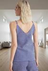 Bu 2'li pijama takımı, ince askılı üst ve fırfırlı şorttan oluşur. 38-46 beden aralığında mevcuttur. Regular kalıbıyla çoğu vücut tipine uyum sağlar. Yaz mevsimi için idealdir ve rahat bir ev ortamı veya tatil için mükemmeldir. Ekose desen ve lacivert rengi ile şık ve modern bir görünüme sahiptir. Kombin önerisi olarak, ev terlikleri veya düz renk bir bornoz ile tamamlayabilirsiniz. Günlük kullanım için ideal bir seçimdir.