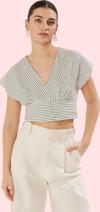Sıcak yaz günlerinde hem şık hem de rahat olmak mı istiyorsunuz? O zaman bu muhteşem kısa kollu crop gömlek tam size göre! V yaka detayı ve şık çizgili deseniyle dikkat çeken bu gömlek, %100 polyester yapısıyla nefes alabilir ve yumuşaktır. Keten görünümlü dokuma kumaşından üretilen gömlek, günlük kullanım için idealdir.