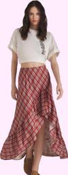 Ersefa Kadın Yazlık Midi Etek Ekose Desen Shally Dokuma Asimetrik Günlük Stil Yaz Aylarının Vazgeçilmezi