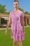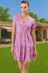 Çiçekli Agraflı Mini Elbise Viskoz Kumaş Skater Kalıp Yazlık Profesyonel Görünüm - Image 1