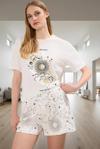 %100 pamuk kumaşın yumuşak dokusu ve nefes alabilirliğiyle gün boyu rahatlık hissedeceksiniz. Parça baskı galaksi deseni, takımınıza modern ve şık bir görünüm kazandırıyor. Regular kalıp sayesinde vücudunuza tam otururken, hareket kısıtlaması yaşamadan rahatça gününüze devam edebilirsiniz. Kısa kollu tişört ve boru paça şort tasarımıyla yaz aylarının sıcak günlerinde serin ve konforlu kalmanızı sağlar. İster evde dinlenirken, ister arkadaşlarınızla buluşurken, isterse de yaz akşamlarında uyurken kullanabilirsiniz.