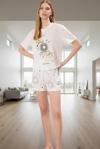 Yumuşacık pamuklu kumaşı ve rahat kalıbıyla yaz gecelerinizin vazgeçilmezi olacak Ekru Galaksi Desenli Pijama Takımımızla tanışın! Şort ve tişörtten oluşan bu 2'li takım, gün boyu süren konforu ve şıklığı bir araya getiriyor. Parça baskı galaksi deseni, takımınıza modern ve gizemli bir hava katarken, bisiklet yakası ve kısa kolları yaz sıcağında serin kalmanıza yardımcı olacak. Nefes alan, yüksek kaliteli pamuk yapısı ile cildinizde ipeksi bir his bırakacak. Regular kalıbı her vücut tipine uyum sağlayarak özgürce hareket etmenizi sağlayacak. Evinizde, tatilde ya da keyifli bir akşam için ideal seçim. Makinede kolayca yıkanabilir ve uzun ömürlü kullanım sunar.