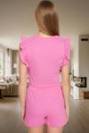 Bu muhteşem pijama takımı, üstün kaliteli %100 pamuk kumaştan üretilmiştir. Nefes alabilir ve yumuşak dokusu, tüm gece boyunca rahat bir uyku deneyimi yaşamanızı sağlar. Fırfırlı detaylar ise, takıma feminen ve şık bir hava katmaktadır. Regular kalıp sayesinde vücudunuza mükemmel uyum sağlar ve hareket özgürlüğünüzü kısıtlamaz. Normal bel şortu ve kolsuz üstü ile mükemmel bir kombinasyon oluşturan bu takım, yaz aylarında idealdir. Tüm bunlara ek olarak, kolay bakımı ve makinede yıkanabilir özelliği de bu takımın pratikliğini ve uzun ömürlülüğünü artırmaktadır. Bu pijama takımı ile, hem rahatlığın hem de şıklığın tadını çıkarın.