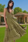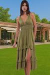 Ersefa Kadın Yazlık Plaj Elbisesi Volanlı Haki Maxi Elbise Rahat Rahat Kullanım Uzun Ömürlü Modern Stil