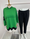 Martcini Kadın Yeşil Kapşonlu Etek Ucu Detay Arma Ters Dikiş Gorunumlu Ikili Takım