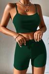 Kadın Yeşil Şortlu Kaşkorse Gecelik Takım