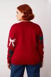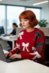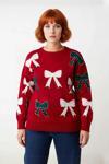 PayBuy Kadın Yılbaşı Temalı Fiyonk Desenli İncili Bisiklet Yaka Uzun Kol Düşük Omuz Kalın Triko Kazak