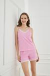 Yumuşak kumaşı ve hafif yapısıyla gün boyu konfor sunarken, ip askılı üst parçası ve dantel detayları feminen bir görünüm kazandırıyor.