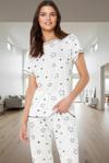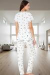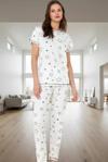 Polyester ve Viskoz karışımı kumaş, nefes alabilirliği ve yumuşaklığıyla öne çıkıyor. Regular kalıp, her vücut tipine uyum sağlarken, kısa kollu tasarımı sıcak havalarda serin kalmanıza yardımcı oluyor. Normal bel yüksekliği ve boru paça tasarımı, hem rahat hem de şık bir görünüm sunuyor. Yüksek kaliteli materyaller kullanılarak üretilen bu pijama takımı, uzun yıllar boyunca ilk günkü kalitesini koruyacak şekilde tasarlandı. Metraj baskı tekniği ile uygulanan yıldız deseni solma yapmadan uzun süre dayanıklılığını koruyor.